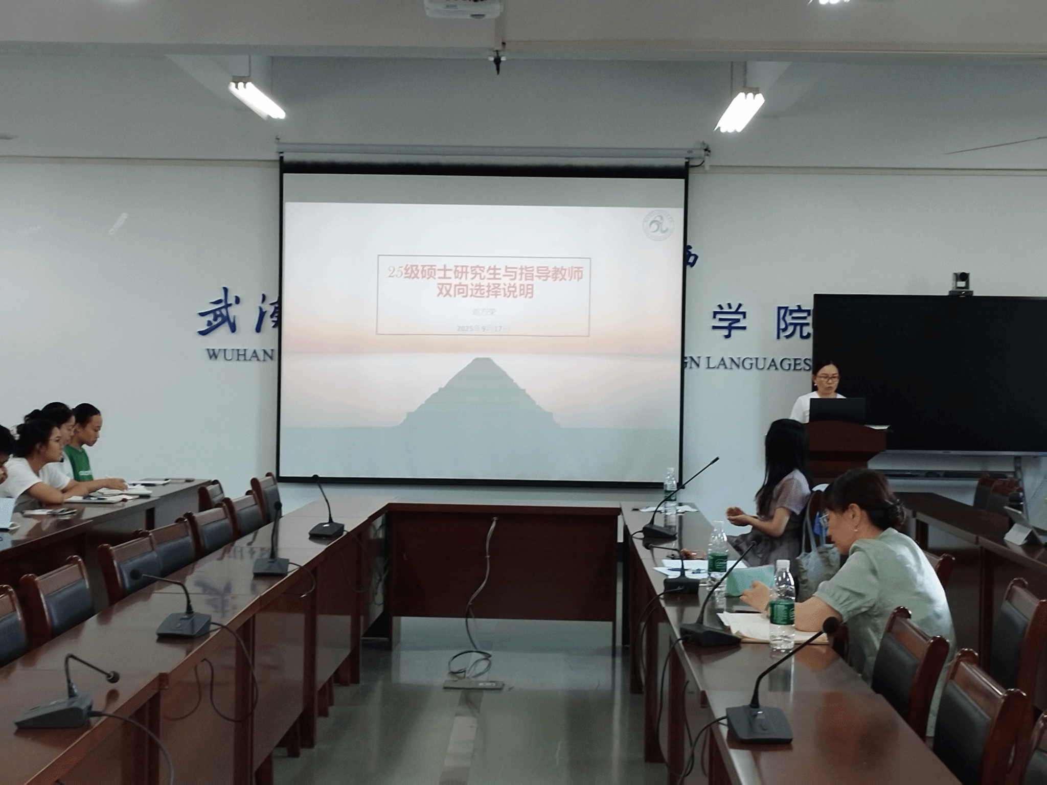 最后,副院长刘方荣对2025级MTI研究生与导师的双向选择作了说明,重点阐释了双选流程、导师年度招生指标分配办法以及导师在培养过程中的责任与权利,刘院长鼓励同学们要不断奋斗做一名优秀的翻译专业人才。至此,2025级MTI研究生开学典礼暨导师见面会圆满结束。