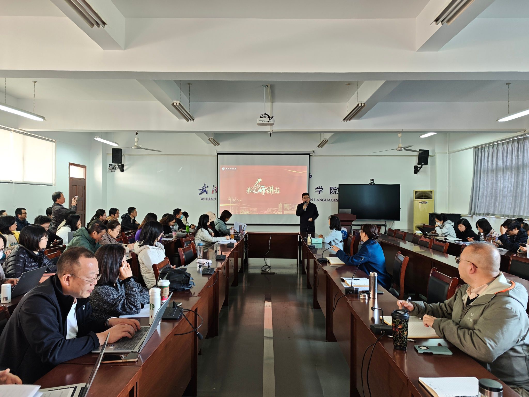 “书记开讲啦”主题活动在阳光校区04-303会议室举行。学院党委书记汪仕辉以《外语学科梦归何处》为题,面向全体教职工作专题讲授,围绕外语学科的危机与先机、变局与新局、趋势与优势展开深入探讨,为学院学科转型与高质量发展明确方向、凝聚共识。