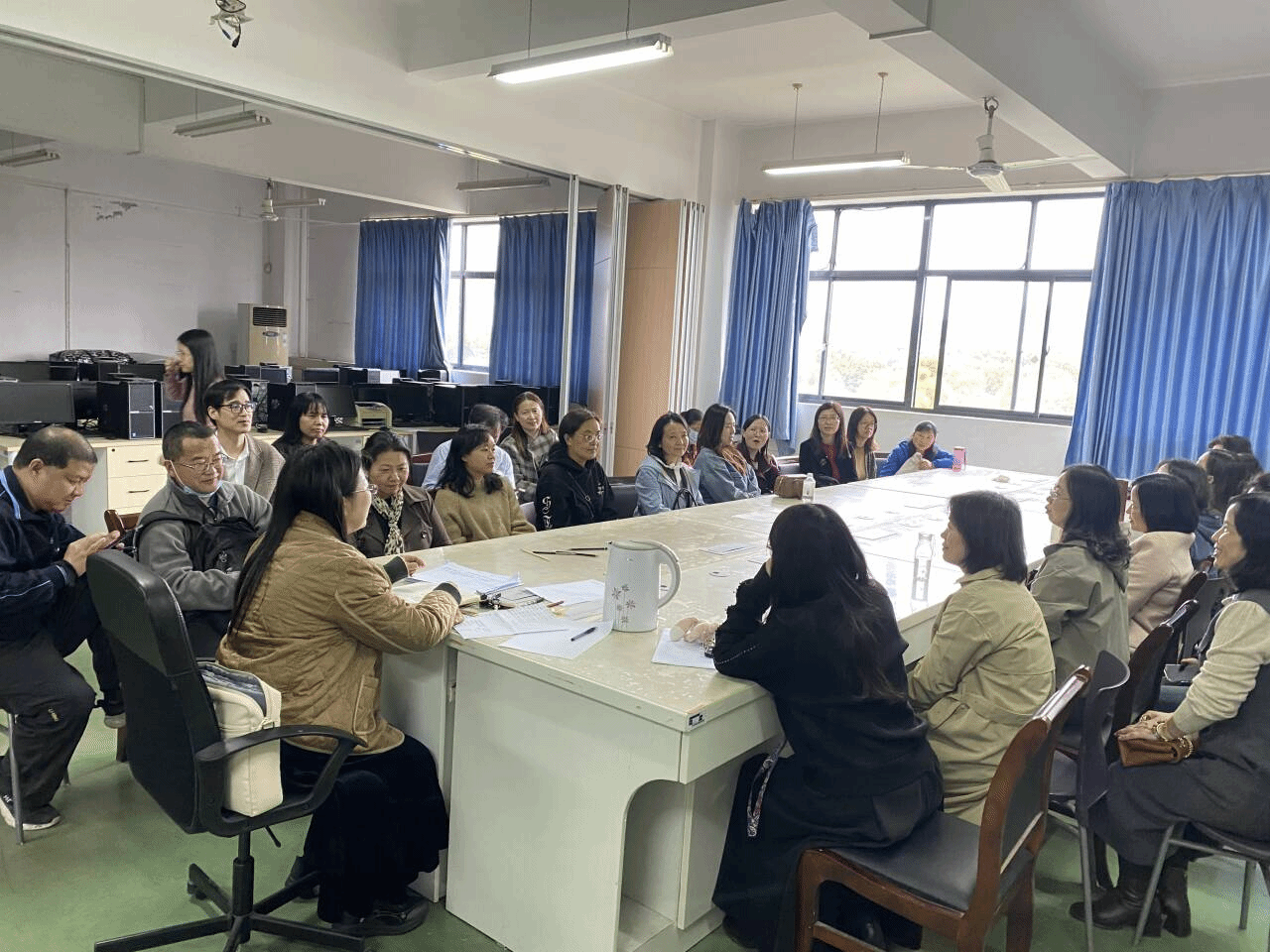 4 月 2 日,大英一部召开专题教研室会议,会议由杨雪主任主持,全体教师参会。会议围绕考研复试辅导工作总结、外语教育改革发展论坛学习心得两大核心议题展开深入研讨。