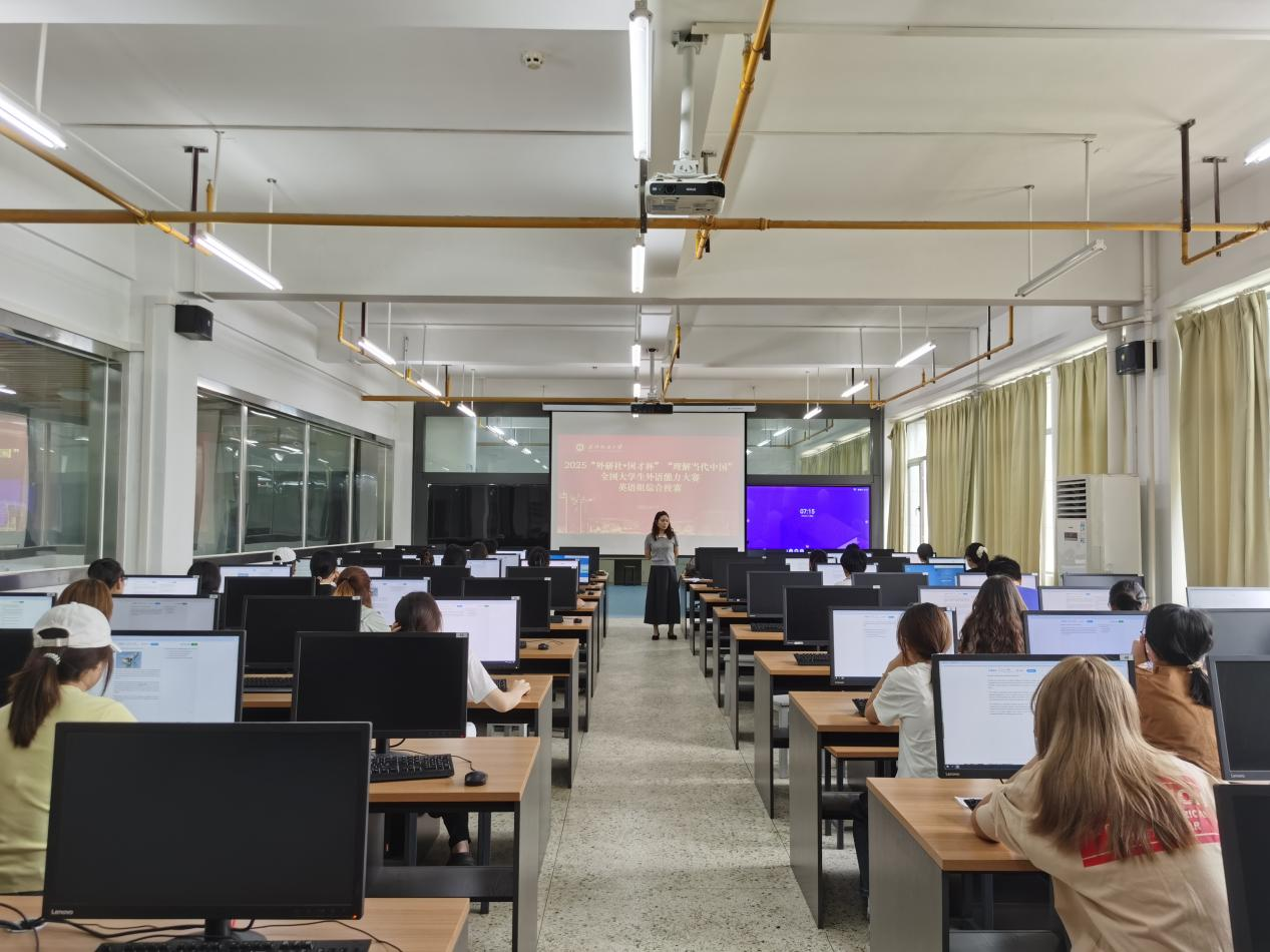 赛事以“理解当代中国”为核心主题,聚焦用英语讲述中国文化、传播中国智慧,致力于培养兼具家国情怀、全球视野与专业能力的复合型外语人才。为确保竞赛过程的公平、公正,本次校赛全程在机房环境下进行,通过监考教师现场监督与大赛平台实时监控双管齐下,严格防范违规操作,营造了规范严谨的竞赛环境。