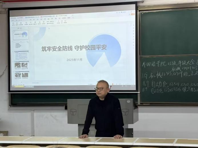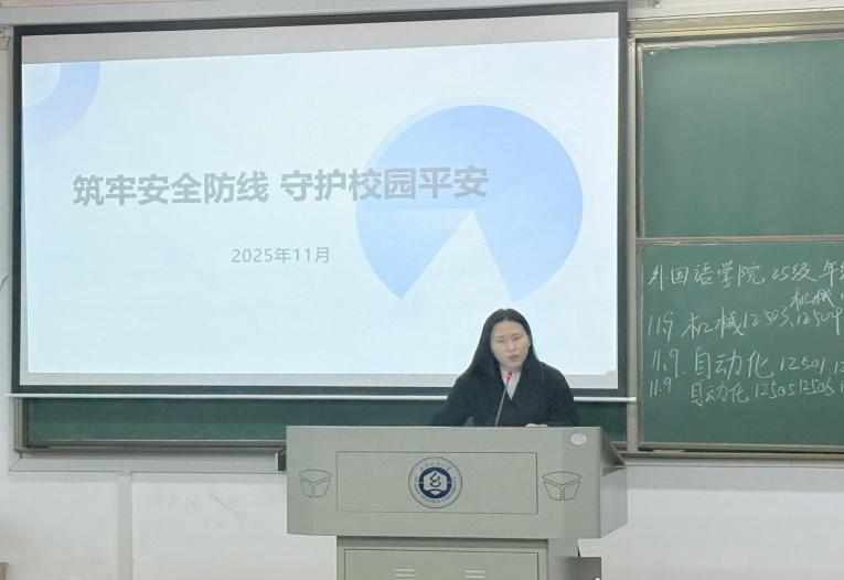 在阳光校区举办安全教育活动。本次大会以“筑牢安全防线,守护校园平安”为核心主题,学院党委副书记彭阳慈航、2025级辅导员石亚楠及2025级全体学生参会。