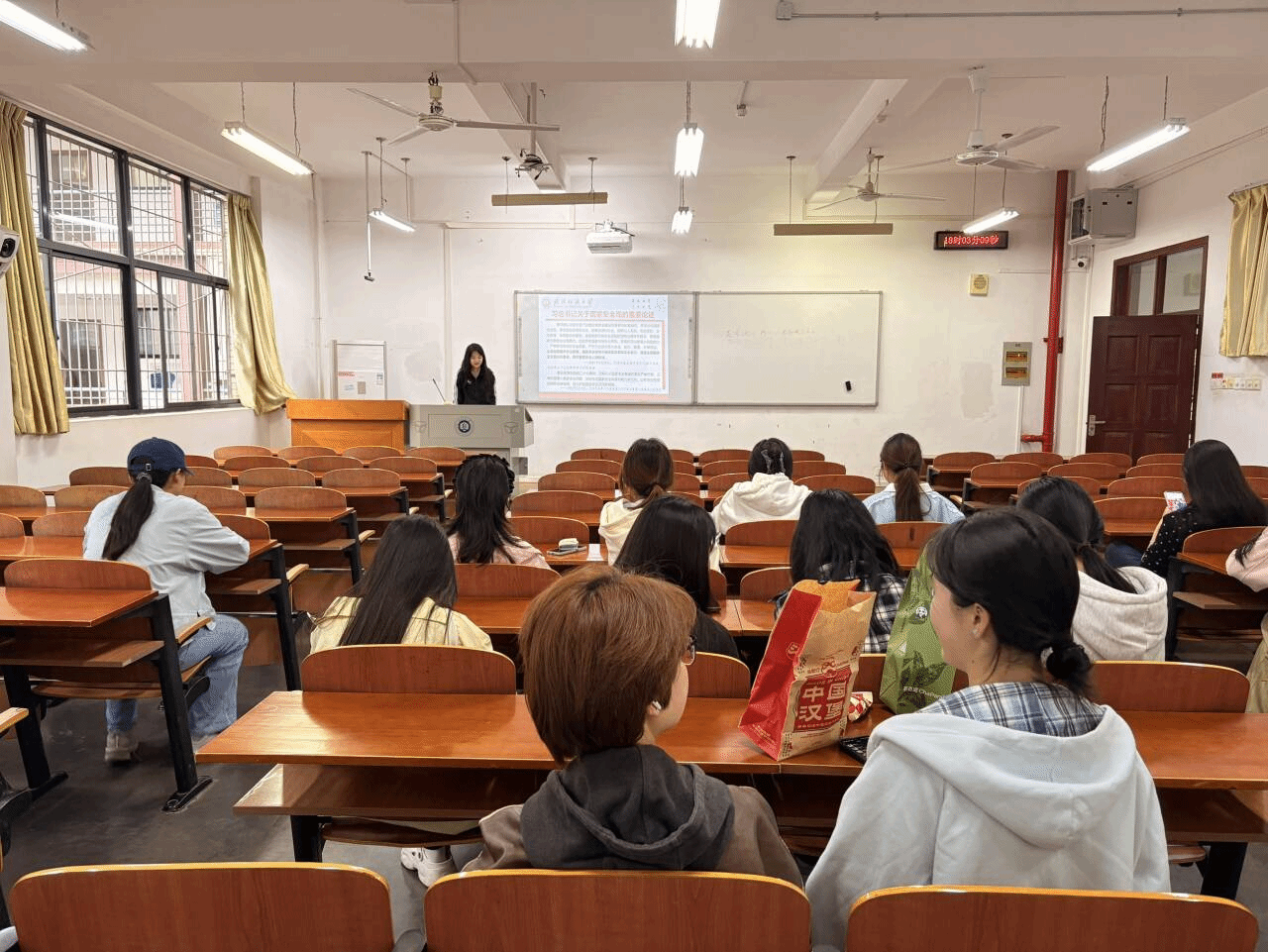 围绕“统筹发展和安全”主题,班主任开展了国家安全知识普及教育,详细解读了大学生维护国家安全的法定义务与行动准则,引导同学们深刻认识国家安全与个人发展的紧密联系,将安全理念融入学习生活与未来发展,以安全护航“十五五”时期国家高质量发展。